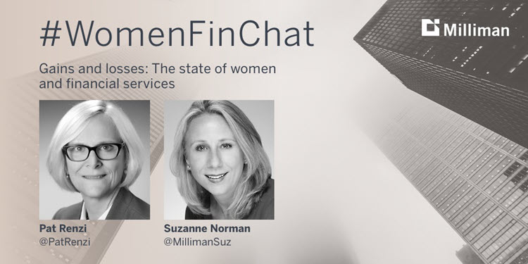 In this Twitter chat, Milliman’s Pat Renzi and Suzanne Norman will discuss some of the distinct challenges women face when it comes to financial planning. They will also highlight the advantages of increasing women's roles in the financial services industry.