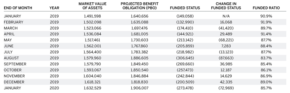 MILLIMAN 100 PENSION FUNDING INDEX — JANUARY 2020 (ALL DOLLAR AMOUNTS IN MILLIONS)