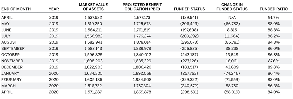 MILLIMAN 100 PENSION FUNDING INDEX — APRIL 2020 (ALL DOLLAR AMOUNTS IN MILLIONS)
