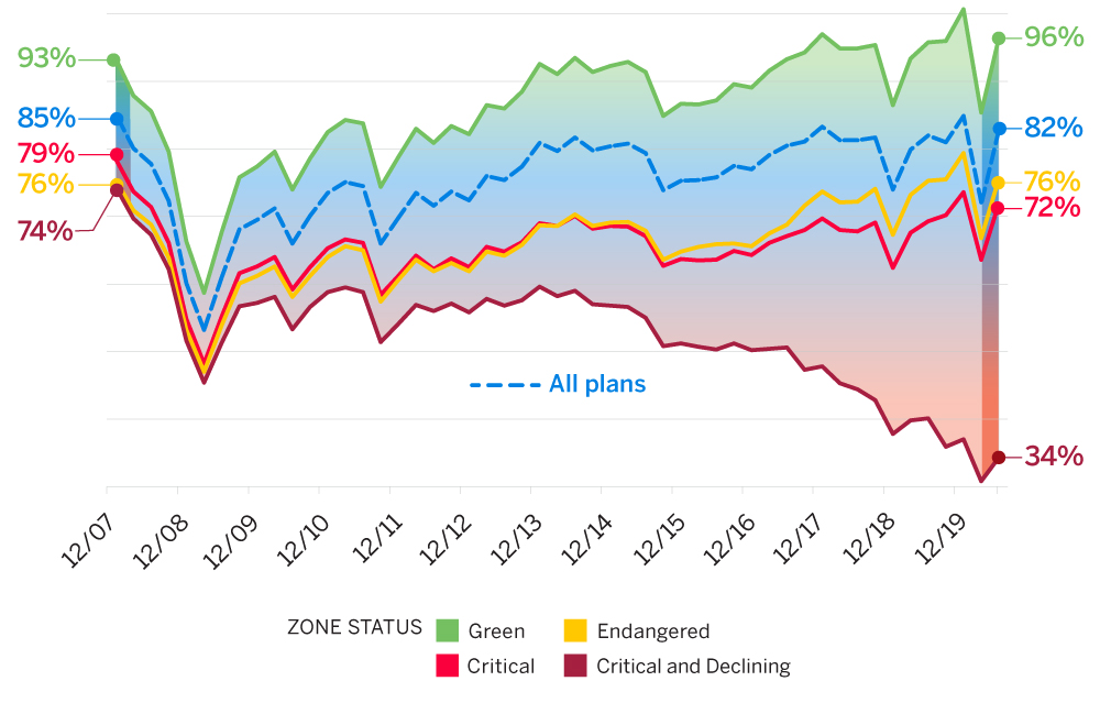 Figure 2: Aggregate historical funded percentage, by current zone status