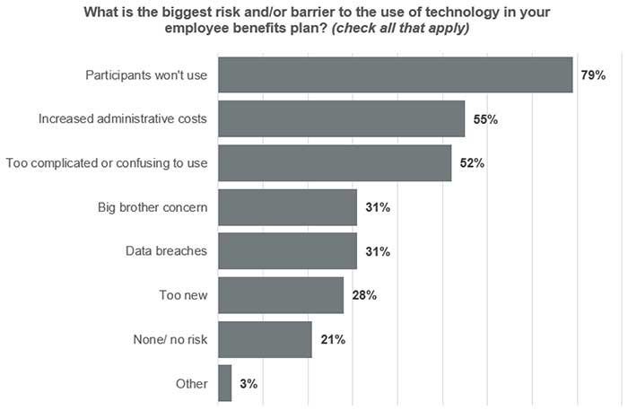 While the investment in benefit technology can increase the likelihood of being viewed as an employer of choice by both current and prospective employees, most respondents recognized this as somewhat important vs. being vital to the company’s overall benefit strategy.